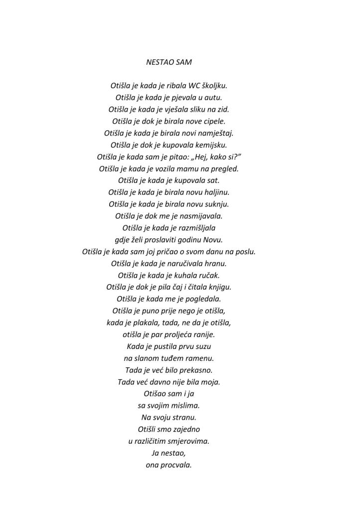 “Nestao sam” is a poignant and introspective poem by Croatian artist and poet Mateo Balaban, known as Rain Bordo. Through a repetitive, mantra-like structure, the poem chronicles the slow emotional detachment and eventual breakup of a romantic relationship. Each line beginning with “She left when…” subtly marks not a singular moment of departure, but a gradual erosion of intimacy, underscoring the quiet tragedy of emotional absence amid routine life.