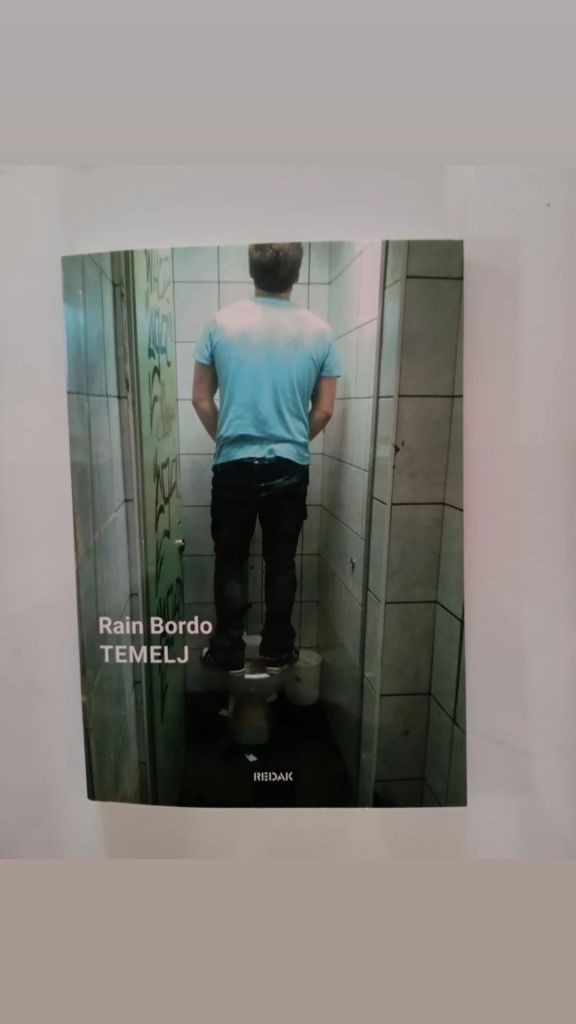 The cover of TEMELJ by Rain Bordo is unapologetically raw. It doesn’t whisper — it confronts. A man stands on top of a toilet seat, his back turned to the viewer, enclosed in a narrow, graffiti-stained restroom stall. This isn’t just a visual shock; it’s a visual manifesto.