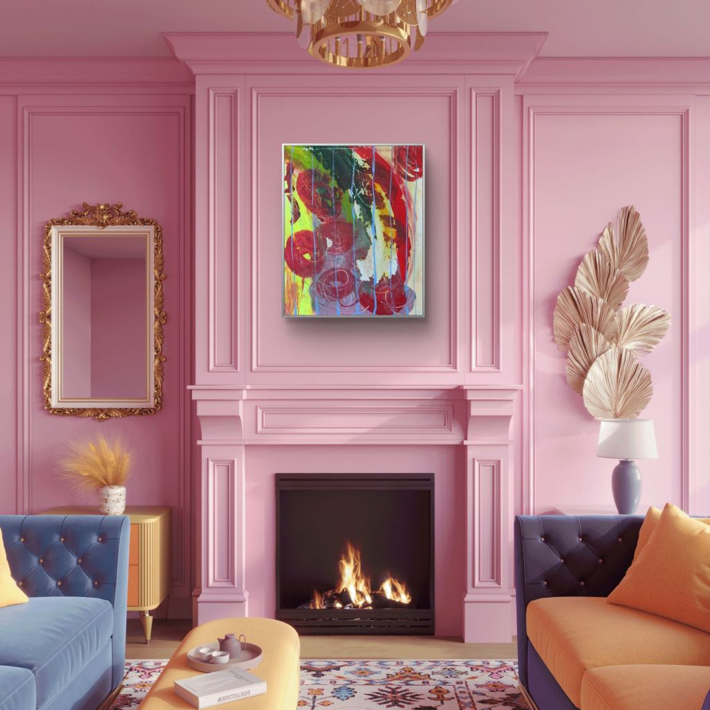 2. That abstract painting above the fire? It’s like Kandinsky got drunk with a toddler and said, “Let’s make chaos fashionable.”