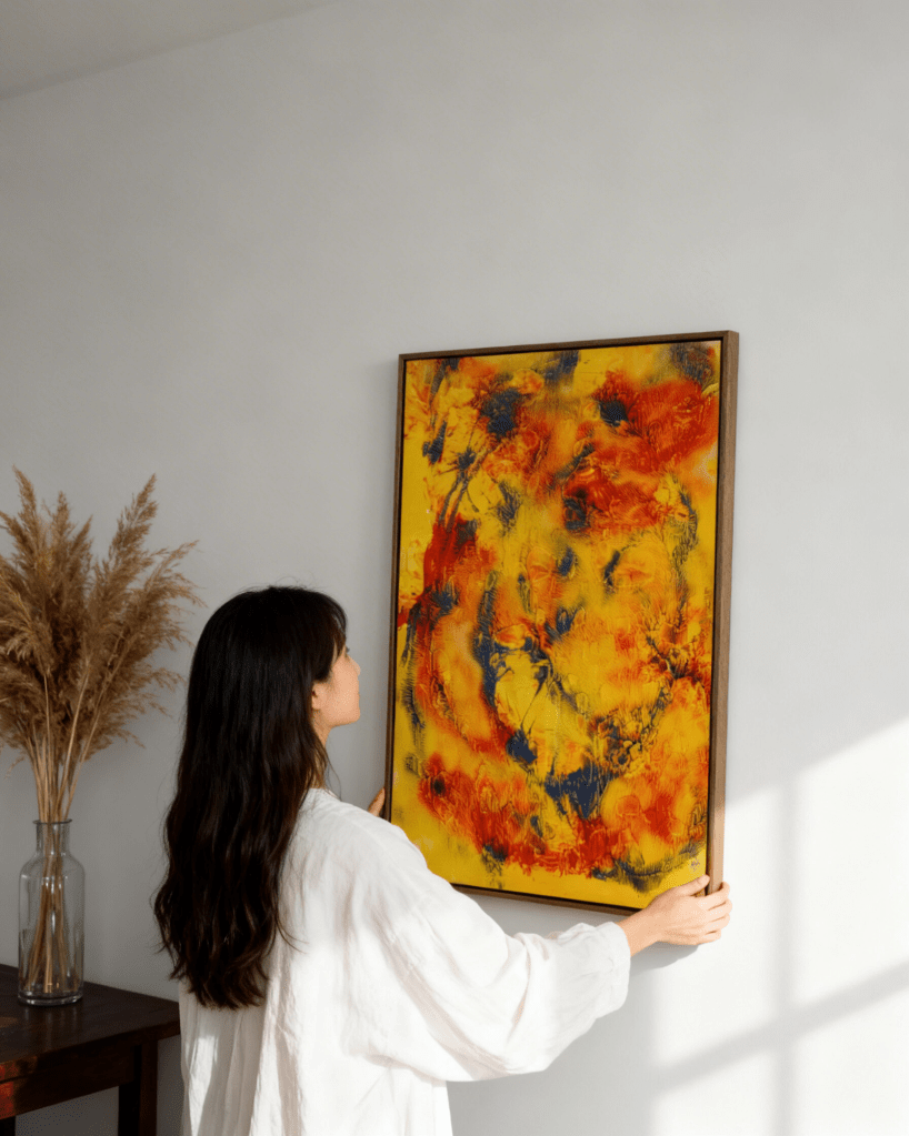 Note: The scale of the work, as seen in the interior setting, emphasizes its role as a “statement piece” that demands the viewer’s full sensory engagement.
