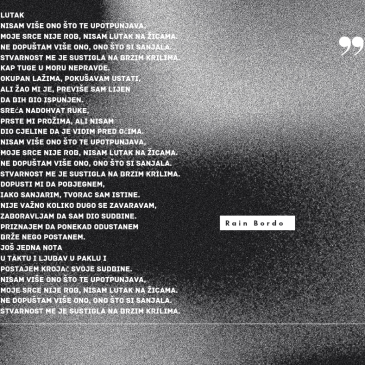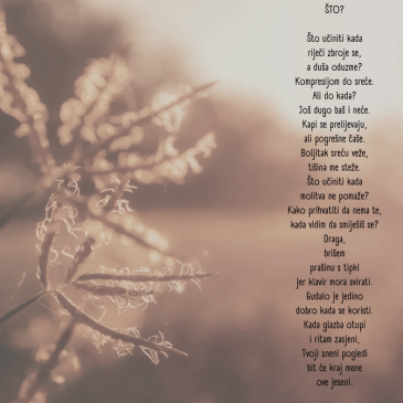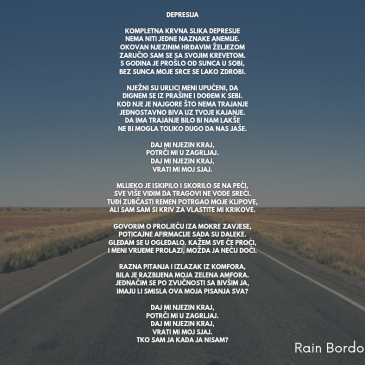 DEPRESIJA Kompletna krvna slika depresije nema niti jedne naznake anemije. Okovan njezinim hrđavim željezom zaručio sam se sa svojim krevetom. 5 godina je prošlo od sunca u sobi, bez sunca moje srce se lako zdrobi. Nježni su urlici meni upućeni, da dignem se iz prašine i dođem k sebi. Kod nje je najgore što nema … More Depresija